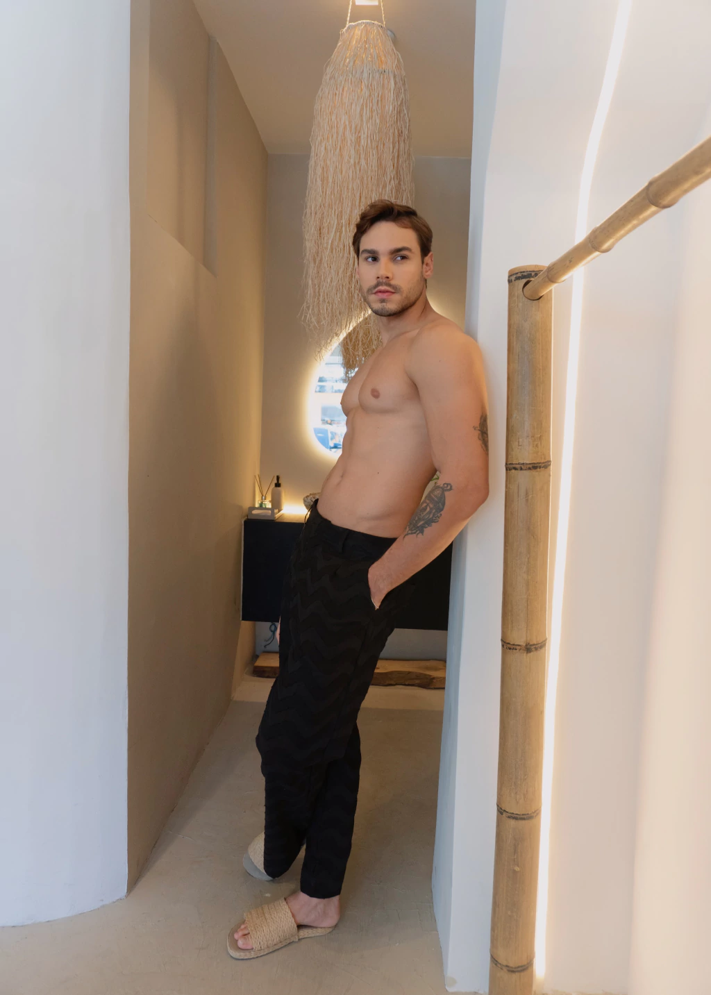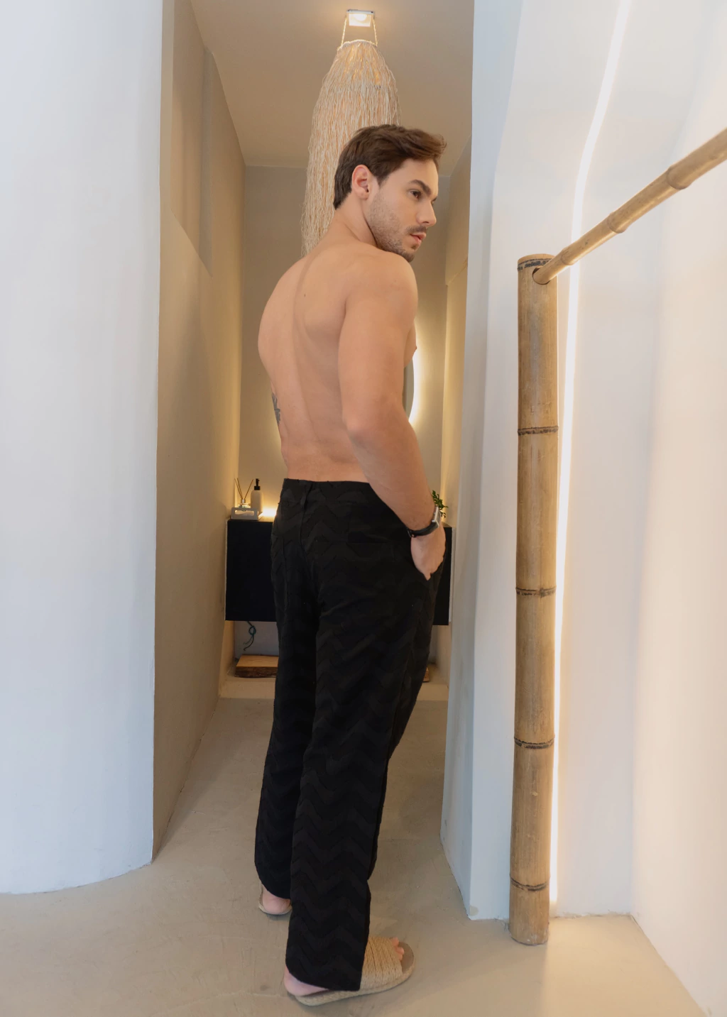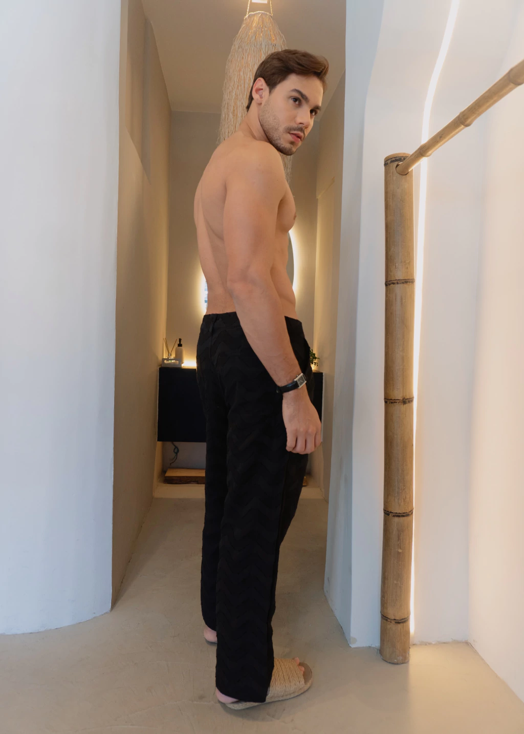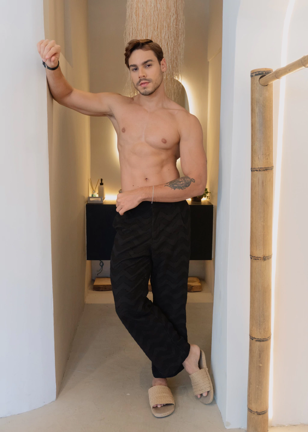 Calça texturizada em malha premium, é a escolha perfeita para quem valoriza estilo e conforto. Com uma modelagem reta. se ajusta ao corpo de maneira moderna, proporcionando um visual elegante para diversas ocasiões.